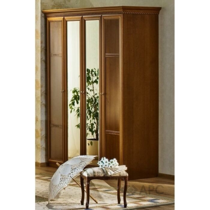Елегантна шафа-гардероб Франческа виконана в благородному класичному стилі, вона прикрашена різьбленою італійської накладкою "меандр" з масиву дерева. Фасади так само декоровані накладками італійського виробництва. Шафа складається з трьох відділень: одинарного з чотирма полками, подвійного зі штангою і полицею, одинарною зі штангою і двома полками.