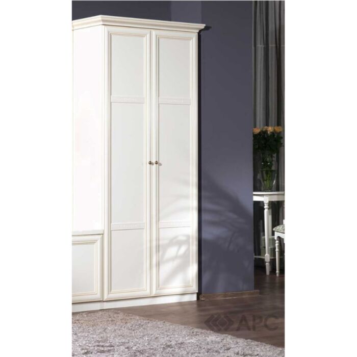Шафа глибиною 55,5 см виконана в класичному стилі. Шафа складається з двох відділень, в одному з яких 4 полички, а в другому поличка і штанга. Фасади цієї колекції виконані з МДФ зі шпоном, а декоративні елементи, профілі і накладки з масиву дерева.