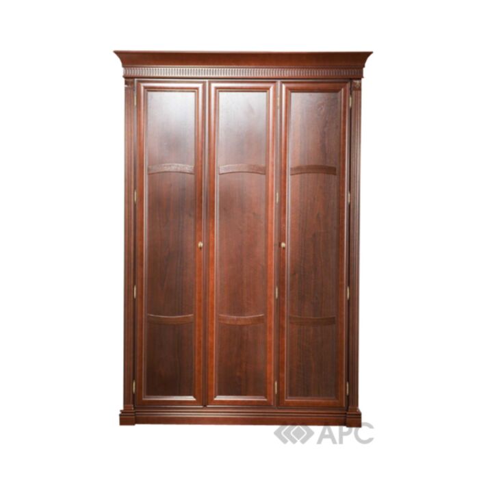 Вишукана шафа-гардероб виготовлена в стилі "класік". Шафа з трьома дверцятами складається з двох відділень: подвійного з двома полками і штангою і одинарного з 4 полками. Розкішний стиль італійської класики підкреслюється декоративною різьбленою обробкою.