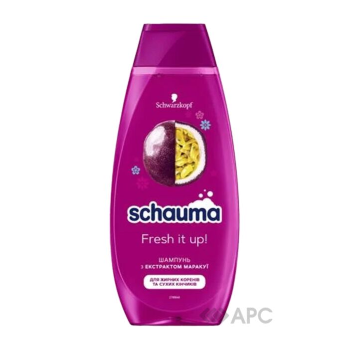 Шампунь Schauma Fresh it up! 400 мл - спеціально розроблений для тих, у кого волосся має схильність до жирних коренів та сухих кінчиків. Його унікальна формула з екстрактом маракуї забезпечує комплексний догляд: ретельно очищає шкіру голови від надлишку себуму, даруючи відчуття свіжості, та одночасно глибоко живить кінчики волосся, відновлюючи їх структуру. Пасма отримують неймовірну легкість, життєву силу та природне сяйво по всій довжині. Продукт підходить для веганів, оскільки не містить інгредієнтів тваринного походження, і не має силіконів. Пляшка виготовлена з 98% переробленого пластику, що підкреслює екологічність продукту.