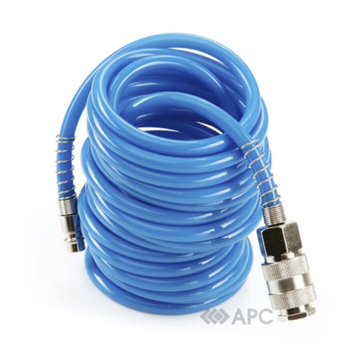 Шланг спіральний поліуретановий APRO 850147 6,5*10 мм 20 м - призначений для подачі стисненого повітря від компресора до пневмоінструменту. Завдяки поліуретановому матеріалу, виріб відрізняється підвищеною еластичністю і міцністю. Легко розтягується на необхідну довжину і скручується в первісну форму, сприяє комфортному використанню в місцях з обмеженим доступом.
