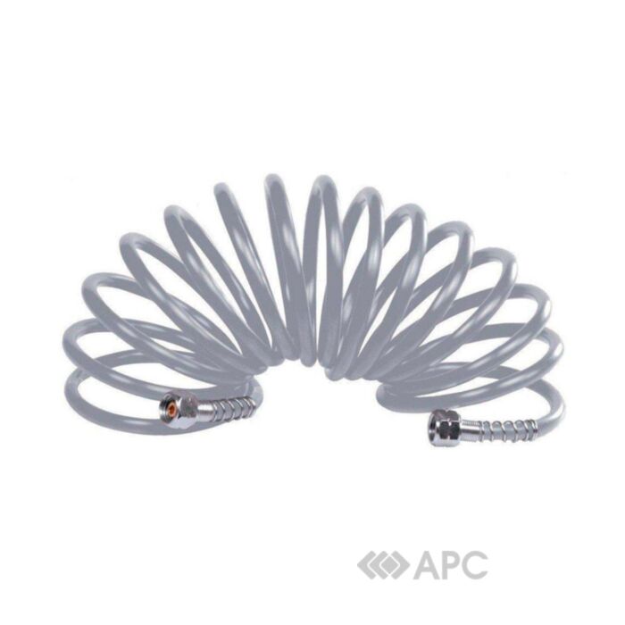 Завдяки поліуретановому матеріалу, виріб відрізняється підвищеною еластичністю і міцністю. Легко розтягується на необхідну довжину і скручується в первісну форму. Такий шланг особливо зручний при роботі в умовах обмеженого простору, а також з підвісним обладнанням. Укомплектований двома перехідниками, відрізняється підвищеною еластичністю і морозостійкістю. Має комплект швидкознімних з'єднань.