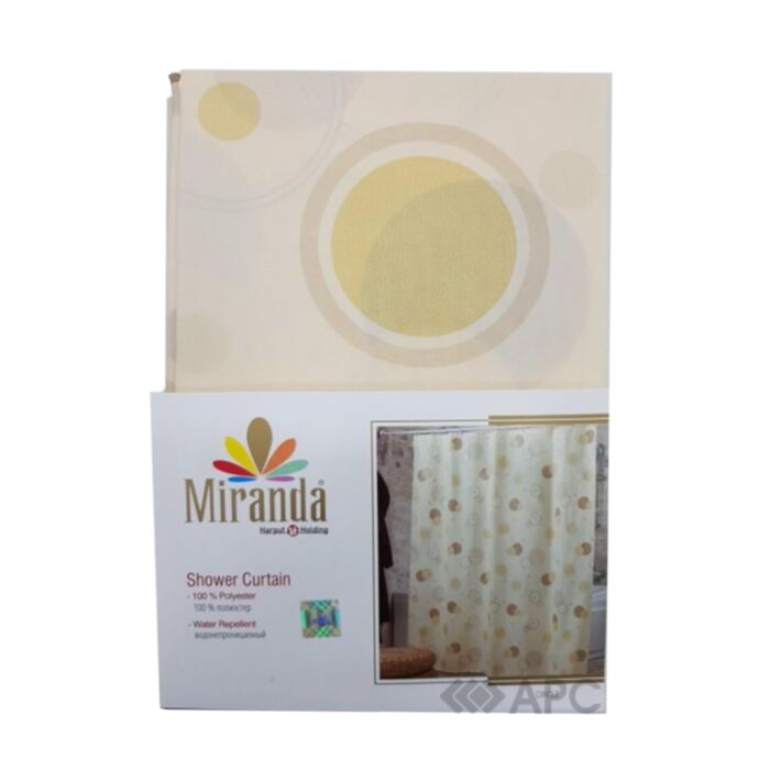 Шторка для ванни Miranda CIRCLE 0312ВG призначена для того, щоб захищати підлогу та інші поверхні від потрапляння на них води. Шторка виготовлена з водонепроникного поліестеру, завдяки чому довго зберігає свої вид, форму та колір.