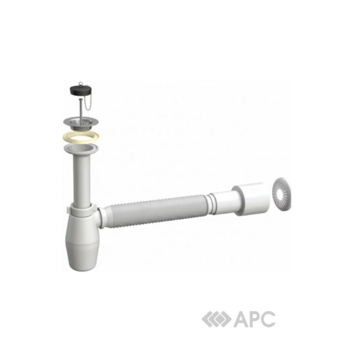 Сифон для умивальника Aqua Factory 2634UA32GR з гофрою 5/4 32 мм призначений для ефективного відведення води з раковин у каналізаційну мережу. Виготовлений із якісного та зносостійкого пластику, цей виріб забезпечує тривалу експлуатацію та легкість у догляді, оскільки матеріал не схильний до корозії та стійкий до впливу побутової хімії. Завдяки класичному мокрому гідрозатвору без мембрани, сифон надійно блокує неприємні запахи з каналізації за допомогою постійного водяного стовпа всередині колби. Модель має стандартний діаметр під'єднання 1 1/4", що робить її сумісною з більшістю сучасних умивальників, при цьому вихідний патрубок діаметром 32 мм забезпечує стабільне з'єднання з каналізаційною системою. Конструкція передбачає механічне (ручне) відкриття або перекриття зливного отвору, що надає користувачеві повний контроль над наповненням чаші. У комплект входить гнучка гофра, яка значно спрощує монтаж у важкодоступних місцях або при нестандартному розташуванні каналізаційних труб. Даний сифон призначений для моделей без функції переливу та не має додаткового виходу для підключення пральної машини, що робить його конструкцію максимально простою, компактною та герметичною.