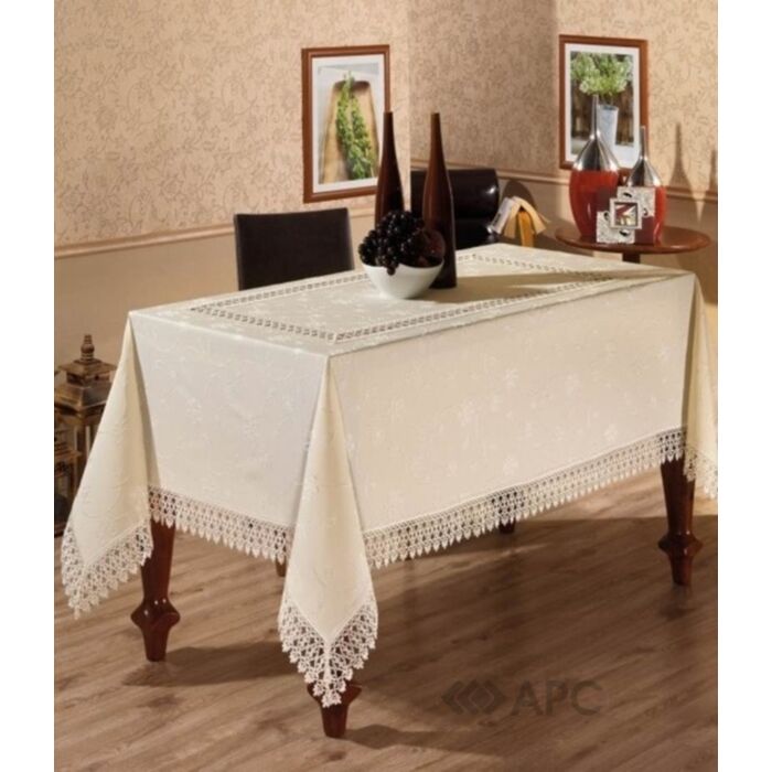 Скатертина Tabe AGK з гіпюром Beyaz-білий Beysu із поліестеру прикрасить ваш святковий стіл. Справжньою окрасою скатертини стане вишукана мережева обробка.