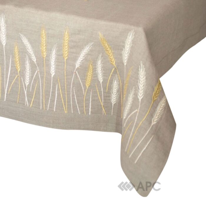 Скатертина Едельвіка Пшеничне поле 62-23/00 175*140 см бежева — це окраса столу, натхненна силою традицій українського народу. Виготовлена з натурального льону та оздоблена сріблясто-золотою вишивкою тендітних колосків, вона естетично прикрасить як повсякденний обід, так і урочисту трапезу. Тканина приємна на дотик та має високу зносостійкість, зберігає бездоганний вигляд навіть після багаторазового прання. Скатертина ідеально підійде для прямокутних або овальних столів середнього розміру, захищаючи їхню поверхню від пошкоджень та забруднень. Її можна поєднувати із серветками та доріжками у такому ж стилі. Вона стане чудовим акцентом на кухні чи у вітальні, додаючи особливого тепла та затишку рідного дому.