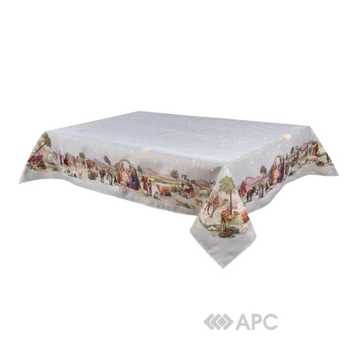 Скатертина гобеленова Limaso Round1153-350 Вифлеємське диво 160*350 см - святковий і яскравий елемент декору Вашої оселі. Дивлячись на візерунок цього виробу, відразу згадуються свята, подарунки, тепло і затишок. Вдале придбання, якщо Ви хочете освіжити інтер'єр і зібрати за столом всю сім'ю. Скатертина м'яка, легка, приємна на дотик, міцна і зносостійка. Нехай навіть повсякденний стіл стане святковим.