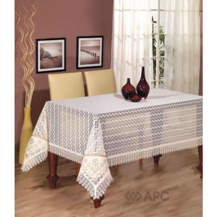 Скатертина Sarmasik Krem Kayaoglu із поліестера прикрасить ваш святковий стіл та наповнять ваше свято особливим духом. Справжньою окрасою служить мережевна обробка скатертини.
