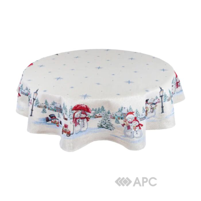 Скатертина новорічна гобеленова Limaso ROUND1062-180D Сніговики-витівники 180 см зі срібним люрексом додасть святкової розкоші Вашому столу та створить особливу атмосферу зимового настрою. Міцна тканина має давню історію, що не переривається завдяки сучасним технологіям. Її склад: 75% поліестер, 22% бавовна, 3% акрил. Щільна структура гобелена має два або три шари, а верхнє кольорове переплетення з однотонною основою відтворює сюжетні казкові композиції. Такий виріб не боїться частого прання, гарячої праски та може використовуватись протягом тривалого часу. При виборі такої оздоби слід звертати увагу на розмір виробу: текстиль має мати великі параметри, щоб краї вільно спадали красивими складками. Скатертина вдало доповнить інтер’єр та подарує тепло і затишок різдвяного столу.