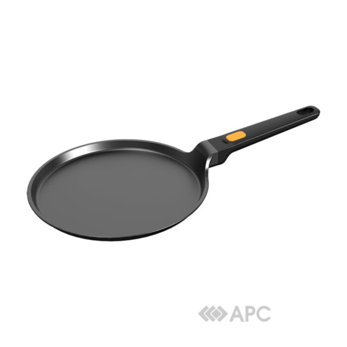 Корпус сковорідки виготовлений з високоякісного литого алюмінію, що забезпечує відмінну теплопровідність та міцність, сприяючи рівномірному прогріванню та довговічності виробу. Внутрішнє преміальне мармурове антипригарне покриття COOKMARK від PFULON гарантує запобігання прилипанню млинців під час смаження та легкість у догляді. Важливо відзначити, що воно не містить шкідливих речовин, таких як PFOA, свинець та кадмій.