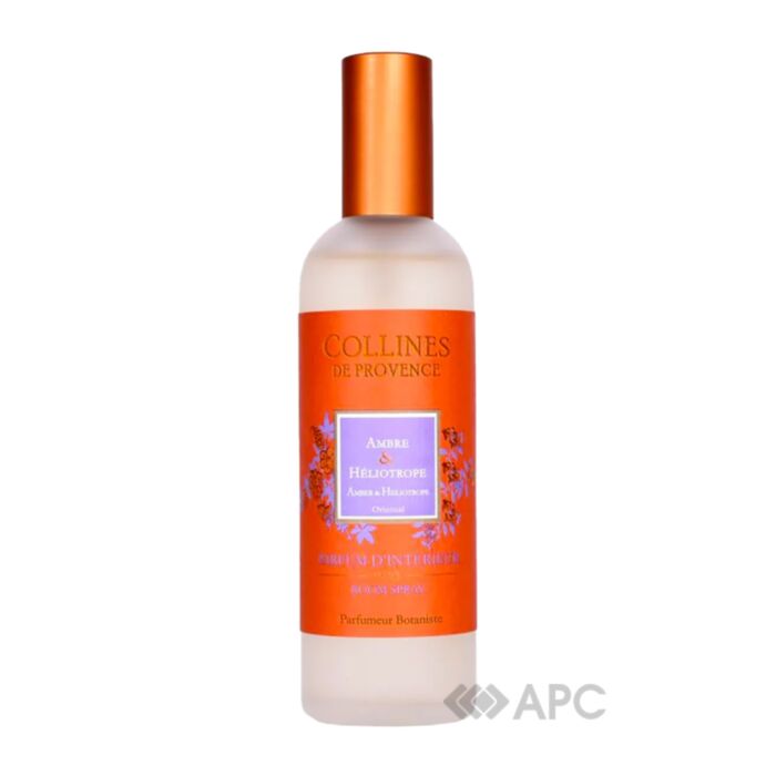 Спрей для кімнати Collines de Provence Амбра і геліотроп C2804AHE 100 мл складаються з натуральних компонентів, не містять синтетичних ароматизаторів, не мають негативного впливу на здоров'я людини, наповнюють простір приємним ароматом, приглушаючи при цьому сторонні запахи. Такий аромат для будинку відповідає головним принципам ароматерапії. Продукція використовується для розпилення в приміщенні, для нанесення на текстиль, меблі та інші елементи інтер'єру. Запах досить стійкий і тривалий час зберігає свою силу й інтенсивність.