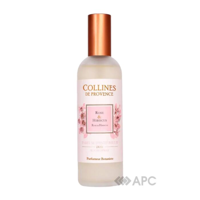 Спрей для кімнати Collines de Provence Троянда і гібіскус C2804RHI 100 мл складаються з натуральних компонентів, не містять синтетичних ароматизаторів, не мають негативного впливу на здоров'я людини, наповнюють простір приємним ароматом, приглушаючи при цьому сторонні запахи. Такий аромат для будинку відповідає головним принципам ароматерапії. Продукція використовується для розпилення в приміщенні, для нанесення на текстиль, меблі та інші елементи інтер'єру. Запах досить стійкий і тривалий час зберігає свою силу й інтенсивність.