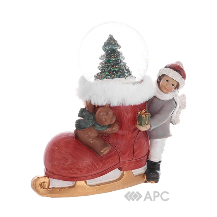 Статуетка Bona Di з водяною кулею Хлопчик 890-212 16*15 см стане окрасою вашого інтер'єру, її можна поставити на стіл або журнальний столик, витончено прикрасивши декоративними стилізованими свічниками, квіткою Пуасенсіі, новорічним віночком і застеливши різдвяну скатертину.