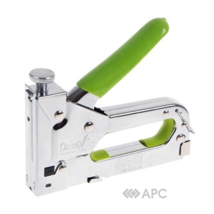 Степлер будівельний Alloid SG-41402 4-14 мм 200 скоб – практичний, зручний і часто незамінний інструмент. Головним його застосуванням є робота з меблями: кріплення оббивки, приєднання фанерного щита і т.д. Однак цим його функції не обмежуються. Степлер чудово підійде для створення кріплення між різними елементами середньої щільності. Широко дане пристосування використовується під час ремонту. Дозволяє прикріпити захисну плівку для виключення розповсюдження по приміщенню пилу, запахів і вологи; фольгу, ВПЕ та інші ізоляційні матеріали невеликої товщини і твердості також зручно закріпити за допомогою степлера. Також чудово підійде й для виконання інших подібних завдань. Конструкція досить проста у використанні. Досить просто притиснути робочий матеріал інструментом до необхідної поверхні і натиснути спусковий важіль. Автоматична пружинна система подачі скоб подбає про те, щоб ви могли працювати швидко не відчуваючи незручностей. При усій легкості у використанні є достатньо потужним, рекомендується використання захисних окулярів. Додатково представлена модель комплектується скобами 8 мм, 200 шт.
