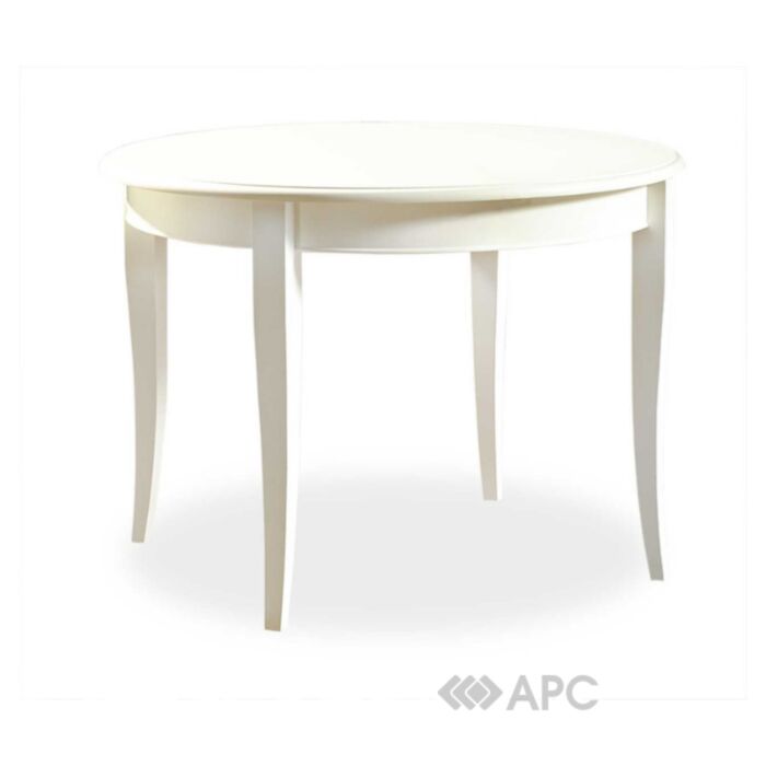 Круглий обідній стіл Veneto діаметром 110 см виготовлений в стилі «класик». Плавні лінії стільниці кольору слонової кістки, фігурні, гнуті ніжки з букового масиву - втілення розкоші і елегантності класики.