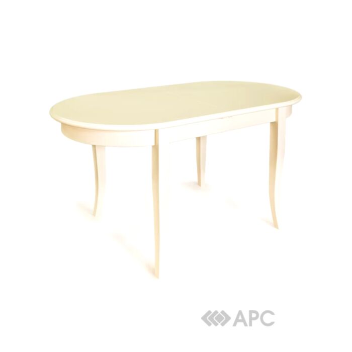 Стільниця виготовлена з високоякісного МДФ з пластиковим покриттям у молочному кольорі. Основа виготовлена з масиву дерева вільхи. Такий стіл абсолютно безпечний, незвичайно міцний і довговічний, а поверхня приємна на дотик, практична і функціональна.