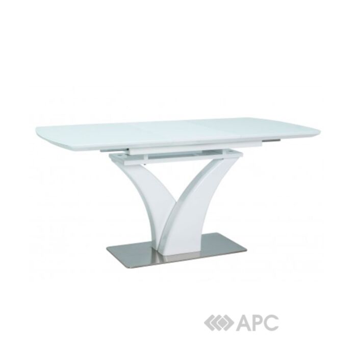 Стіл обідній Signal Faro - чудова модель для великої родини або для любителів приймати гостей. Витончений дизайн, плавні лінії та благородний білий колір - все це робить стіл головним акцентом вашої кімнати. Стільниця виконана із міцного МДФ та загартованого скла - стійкого до пошкоджень матеріалу. Розкладний стіл за допомогою неважких рухів перетворюється із 120-ти сантиметрового в 160-ти сантиметровий стіл, який з легкістю дозволяє розмістити вісім персон. Висота складає 76 сантиметрів, що вважається оптимальним серед обідніх столів. Елегантний розкладний стіл Faro стане багатофункціональним та практичним елементом вашого помешкання.
