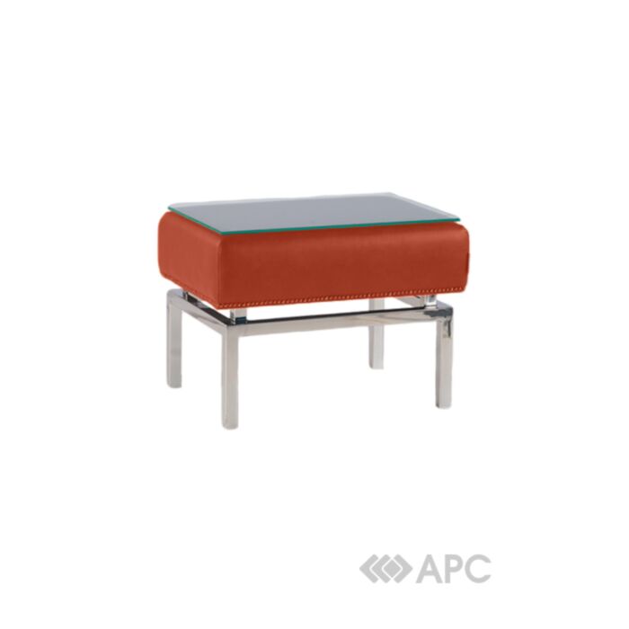 Столик до ліжка Россі відмінний вибір для цінителів простоти і легкості. Дана модель не має яскраво виражених ліній. Наявність декоративних меблевих цвяхів в нижній частині підкреслює завершеність, забезпечує лаконічність, стриманість. Серія Россі (пуф, банкетка і приліжковий столик) стане відмінним доповненням до існуючого інтер'єру. Використовувати їх можна на свій розсуд. Меблі досить багатофункціональні. Каркас з нержавіючої сталі забезпечує надійність, довговічність. Вони не розбірні, стиків в деталях немає. Габаритні розміри, см: 58*43*44.