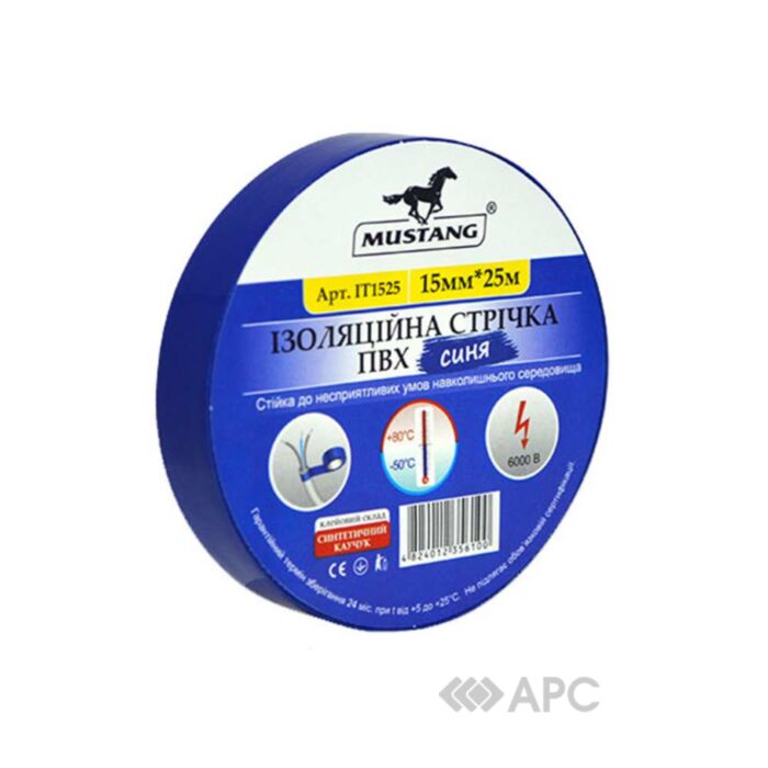Mustang ІТ1525с — ізоляційна стрічка, яка має широкий спектр застосування. Її використовують для з’єднання, ізоляції, ремонту кабелів та проводів. Також ізолентою різних кольорів маркують проводку. Міцна стрічка Mustang виготовлена з полівінілхлориду, на який нанесений клейовий шар з синтетичного каучуку. Завдяки використанню таких матеріалів дана модель еластична та стійка до механічних пошкоджень. Ізоляційна стрічка не підтримує горіння та має чудову термостійкість. Напруга пробою становить понад 6000 В. Стрічка ізоляційна Mustang ІТ1525С — чудовий варіант для ізоляції виробів та матеріалів, які проводять електрику.
