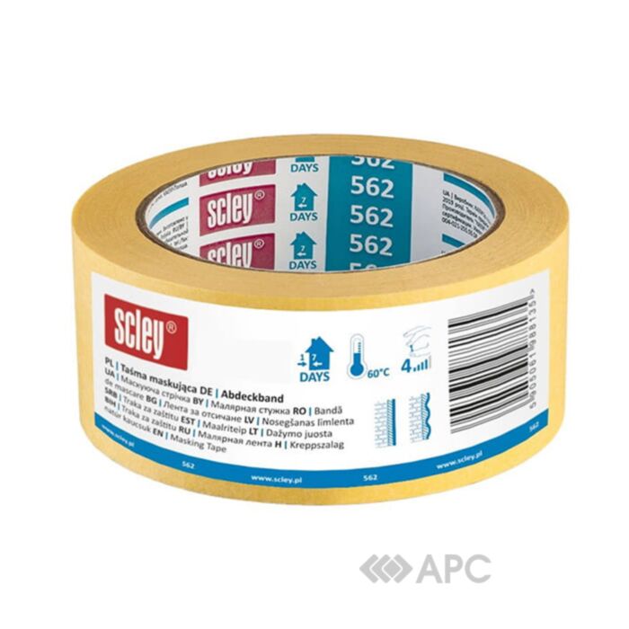 Малярський скотч шириною 50 мм головним чином використовується при оздоблювальних роботах, коли важлива особлива акуратність і точність результату. Ступінь адгезії не є високим, завдяки чому при відклеюванні не залишає слідів клею на поверхні, не створює пошкоджень. Може використовуватися як для захисту поверхонь від попадання фарби, так і для створення візерунків при фарбуванні в кількома кольорами (смужки, клітинки, багатокутники). Також застосовують при облицюванні підлоги плиткою: плитка заклеюється по швах, завдяки чому не розходиться. Крім того, всілякі деталі, які клеяться на монтажний клей до повного висихання слід додатково кріпити малярською стрічкою. Запас стрічки: 50 м.