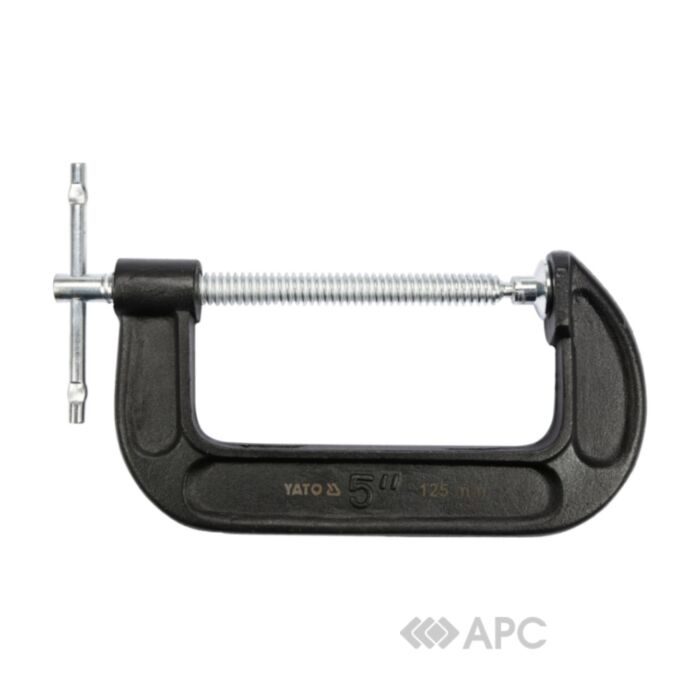 Струбцина гвинтова G-подібна YATO YT-64254 5" 125 мм — цей інструмент є допоміжним пристосуванням, яке відповідає за надійну фіксацію деталі під час її обробки, а також для створення щільного контакту між двома або кількома деталями, наприклад, під час свердління або склеювання.