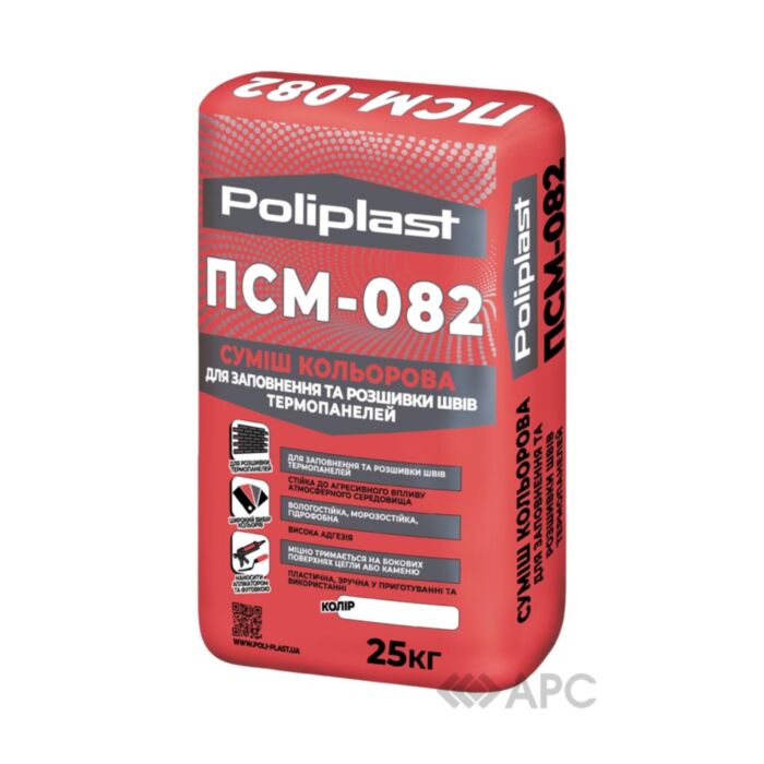 ПСМ-082 - суха кольорова суміш для заповнення та розшивки швів термопанелей та інших облицювальних матеріалів (кладки клінкерної, керамічної, силікатної лицьової цегли, натурального і штучного каменю, облицювальної плитки та інших стінових матеріалів) шириною до 20 мм між облицювальними матеріалами всередині і зовні приміщень.