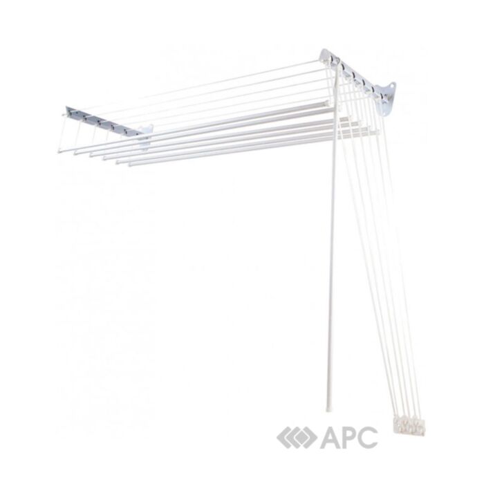 Сушарка для білизни настінна Apex S&G A67900 1,2 м легко оптимізує простір та дозволить звільнити більше місця на балконі, лоджії чи ванній кімнаті. Модель оснащена шістьма підйомними мотузковими елементами. Виріб призначений для сушіння одягу на висоті до 2 метрів. Не радимо перевантажувати сушарку для уникнення майбутніх поломок. Максимальне допустиме навантаження 25 кг. Робоча довжина поверхні 120 см. Планки для білизни виконані з металу, кріплення зі сталі.