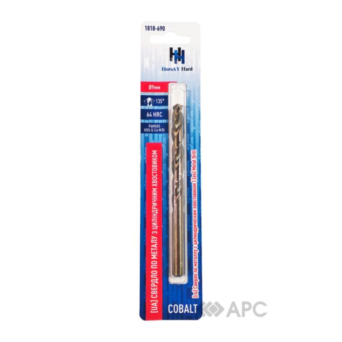 Свердло по металу HorsAY Hard 1818-690 Cobalt HH 9 мм - це інструмент з швидкоріжучої сталі, яка не тільки забезпечує високу міцність та гарантує тривалий термін експлуатації виробу, але і знижує вартість витратних матеріалів без втрати його технічних характеристик.