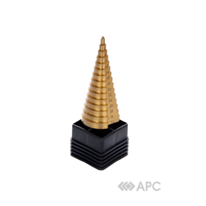 Свердло ступінчасте APRO 830293 15 ступенів 4-32 мм допоможе просвердлити отвори великого діаметра в листових металах та пластику. Спеціальна ступінчаста конструкція дає можливість робити отвори різного діаметру від 4 до 32 мм, при цьому не міняючи ріжучий інструмент. Матеріал виготовлення - високоміцна швидкорізальна сталь.