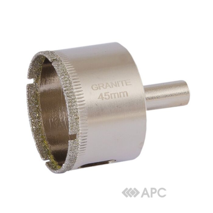 Трубчасте алмазне свердло (коронка) по плитці та склу GRANITE служить для свердління, створення поглиблень, наскрізних отворів, розсвердлювання існуючих. Виріб виконаний з високоякісного матеріалу; спеціальна форма забезпечує максимальну продуктивність без зайвого перегрівання. Свердло тривалий час не втрачає своїх ріжучих властивостей і забезпечує максимально якісний результат. Рекомендується використання з водним охолодженням на низьких обертах.