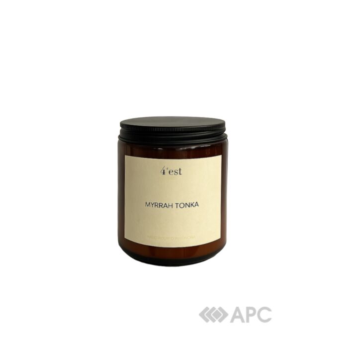 Свічка ароматична 4'est Myrrah Tonka в склянці з кришкою 250 мл – це сучасний елемент декору, що допомагає створити атмосферу затишку та відпочинку у приміщенні. Виріб поєднує в собі стильну бурштинову баночку з металевою кришкою чорного кольору, а також соєвий віск преміум якості з дерев’яним гнітом. Чарівний аромат розкривається нотками лаванди та мирри, вишукану базу складають боби тонка та ваніль, а завершальні акорди заворожують теплим запахом мигдалю. Приємне потріскування деревини додає відчуття гармонії та спокою. Виробник використовує лише безпечні, натуральні, екологічні матеріали, що не шкодять навколишньому середовищу та здоров’ю людини. Тривалість горіння до 40 годин.