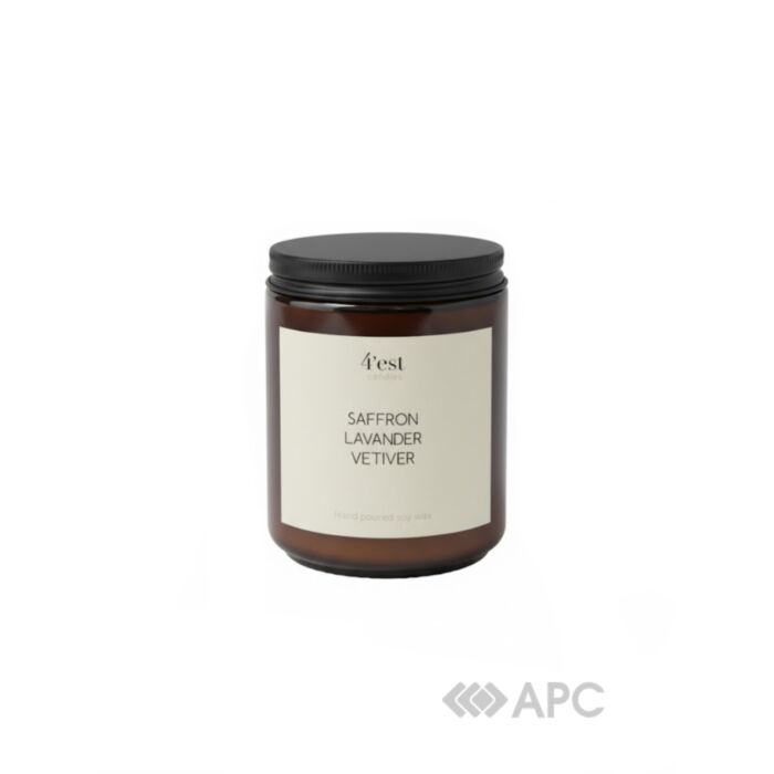 Свічка ароматична 4'est Saffron Lavandеr Vetiver в склянці з кришкою 250 мл – це сучасний елемент декору, що допомагає створити атмосферу затишку та відпочинку у приміщенні. Виріб поєднує в собі стильну бурштинову баночку з металевою кришкою чорного кольору, а також соєвий віск преміум якості з дерев’яним гнітом. Чарівний аромат розкривається нотками прянощів, шафрану, імбиру та мандарина, вишукану базу складають квіти апельсина, бергамот та лаванда, а завершальні акорди заворожують теплим запахом ванілі, меду, пудри, бобів тонка та ветиверу. Приємне потріскування деревини додає відчуття гармонії та спокою. Виробник використовує лише безпечні, натуральні, екологічні матеріали, що не шкодять навколишньому середовищу та здоров’ю людини. Тривалість горіння до 40 годин.