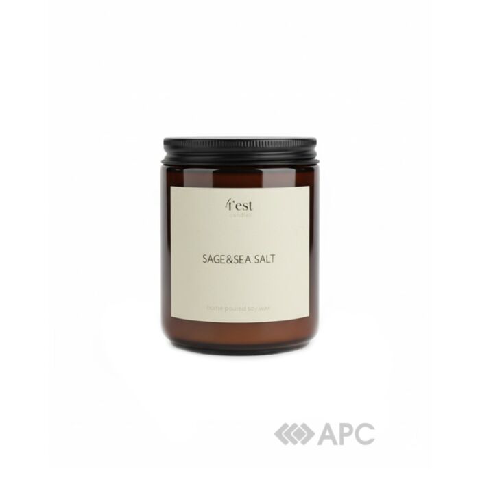 Свічка ароматична 4'est Sage&Sea Salt в склянці з кришкою 250 мл – це сучасний елемент декору, що допомагає створити атмосферу затишку та відпочинку у приміщенні. Виріб поєднує в собі стильну бурштинову баночку з металевою кришкою чорного кольору, а також соєвий віск преміум якості з дерев’яним гнітом. Чарівний аромат розкривається нотками бергамоту, листя бучу та насіння амбретти, вишукану базу складають мінеральні ноти, морська сіль та сухофрукти, а завершальні акорди заворожують теплим запахом білого мускуса, гваякового дерева та шавлії. Приємне потріскування деревини додає відчуття гармонії та спокою. Виробник використовує лише безпечні, натуральні, екологічні матеріали, що не шкодять навколишньому середовищу та здоров’ю людини. Тривалість горіння до 40 годин.