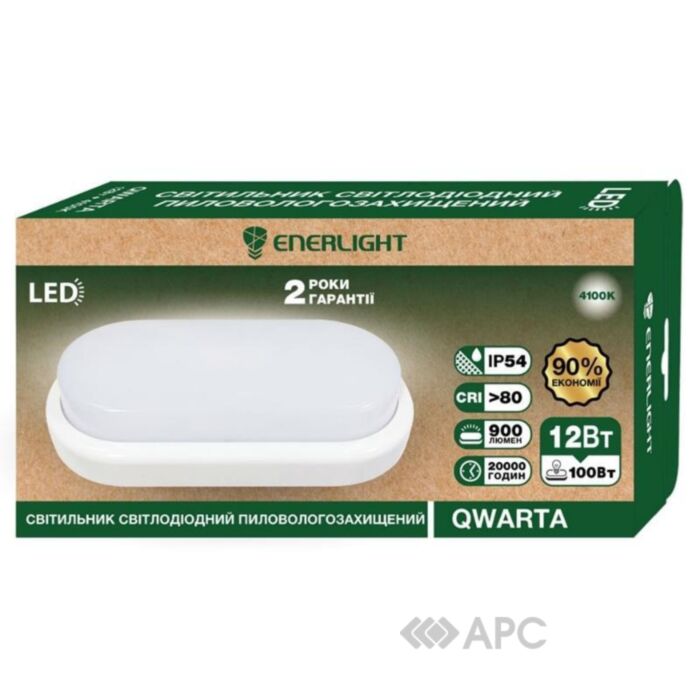 Світильник пиловологозахищений Enerlight LED Qwarta 12Вт призначений для освітлення технічних і громадських приміщень, що знаходяться на забезпеченні житлово-комунальних господарств: прибудинкових територій, під'їздів, сходових клітин, підвальних і горищних приміщень, паркінгів.