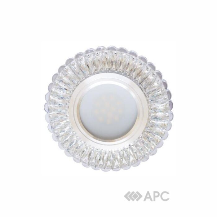 Вбудований точковий світильник Feron під лампу G5.3. Покриття виконано електрохімічним способом (попереднє анодування і подальше гальванічне покриття), що дозволяє світильнику довго зберігати первинний зовнішній вигляд.