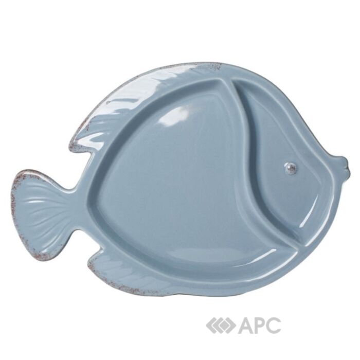 Тарілка секційна "Риба" - оригінальний і стильний керамічний посуд для затишного святкового і повсякденного столу. Вона виконана з кераміки з блакитною глянсовою глазур'ю, в формі риби. По краях - ефект потертості в англійському стилі Shabby Chic, створить неповторний шарм Вашій сервіровці. Тарілка секційна Риба блакитна стане новим цікавим доповненням вашої столового посуду і прекрасним декором на вашій кухні.