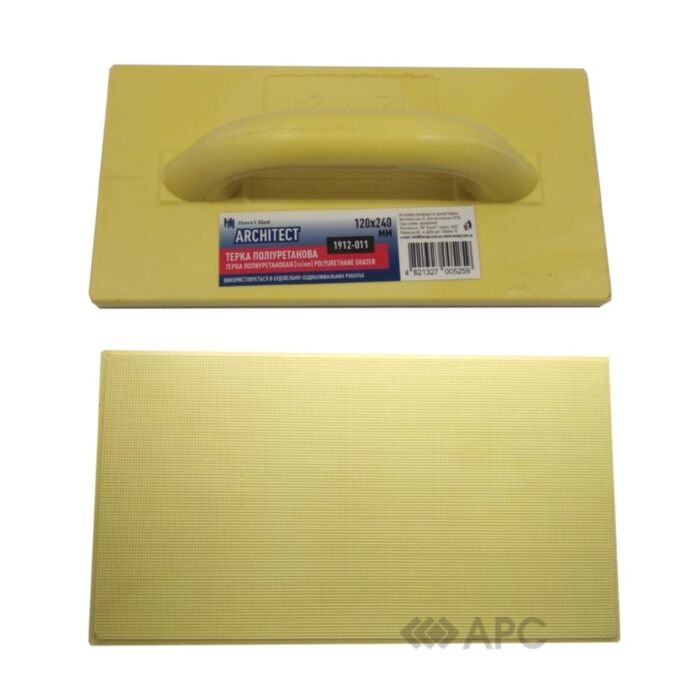 Терка поліуретанова HorsAY Hard 1912-011 12*24 см є популярним серед майстрів інструментом, який має прекрасне співвідношення зручність/міцність/результат. Використовують цей інструмент для перетирання мокрої штукатурки. Тертки з поліуретану набагато довговічніше за пінопластові, останні також вимагають більшого досвіду використання, оскільки пінопластовий інструмент дуже просто зламати в процесі використання. Завдяки загальній жорсткості поліуретану терка ефективно знімає зайву будівельну суміш, роблячи поверхню максимально рівною. Середній робочий ресурс (без істотного стирання) моделей в залежності від інтенсивності використання становить близько 40-50 м². Багато фахівців поперемінно використовують пінопластову, поліуретанову і пластикову терки, але для першого досвіду описаного виду робіт представлена модель підходить якнайкраще.