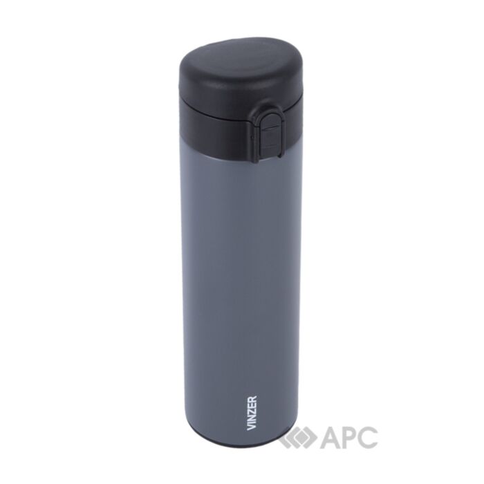Термокухоль від швейцарського виробника Vinzer дозволяє насолоджуватись улюбленими теплими напоями де б ви не були. Корпус виготовлено з нержавіючої сталі, подвійні стінки виробу забезпечують тривалу підтримку потрібної температури. Кнопковий механізм полегшує споживання зігріваючого напою навіть при ходьбі. Зберігає тепло до 5 годин.