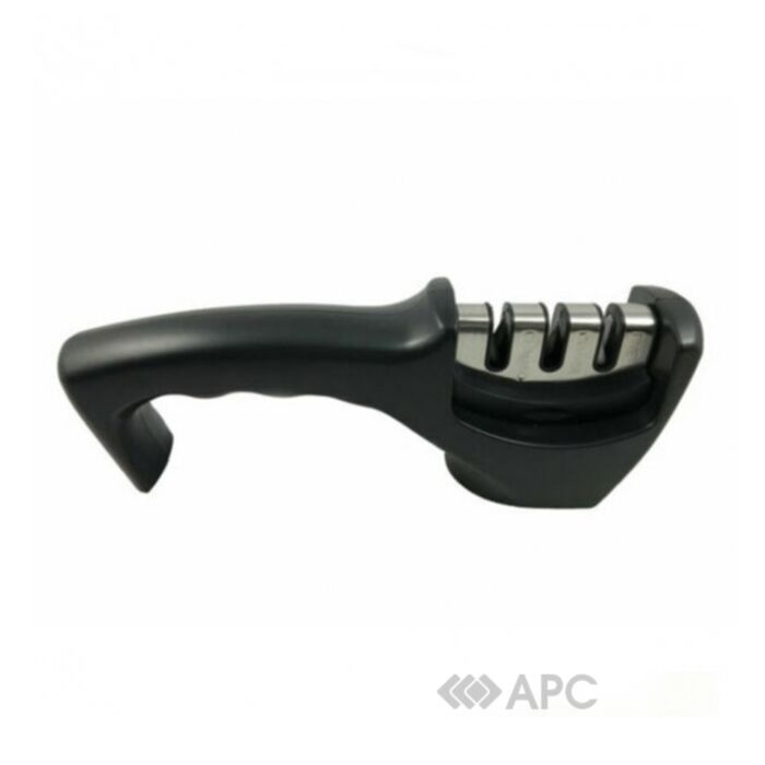 Точило для ножів A-Plus — це спеціальний ручний верстат, який використовують для підгострення різнотипних ножів із різною товщиною леза. Виготовлений прилад з керамічних стрижнів та вольфрамової сталі, основа із високоякісного, міцного пластику з комфортною ручкою. Конструкція допомагає легко та швидко в домашніх умовах підгострити лезо 4-5 рухами вперед - назад. Інструмент налічує три канавки, що дуже зручно, розміри товару 20,5х7,2х4,5 см.