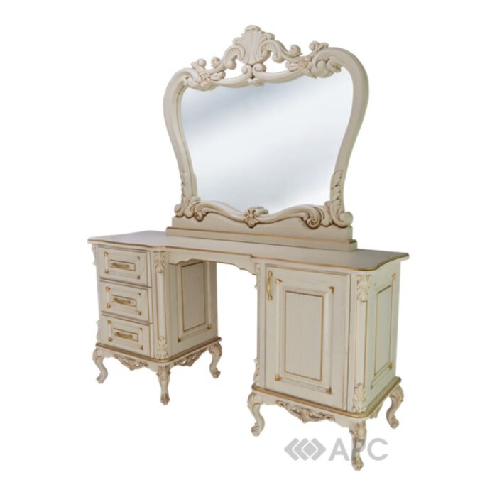 Дерев'яні меблі Афродита вирізьняються естетикою і природним матеріалом, ніби знову з'єднує нас з матір'ю Землею. Завдяки своїм формам Туалетный столик с зеркалом Афродита ніби твір мистецтва для вашого будинку. Дерев'яні меблі серії Афродіта добре поєднується з класичним інтер'єром, вони можуть передаватися з покоління в покоління.