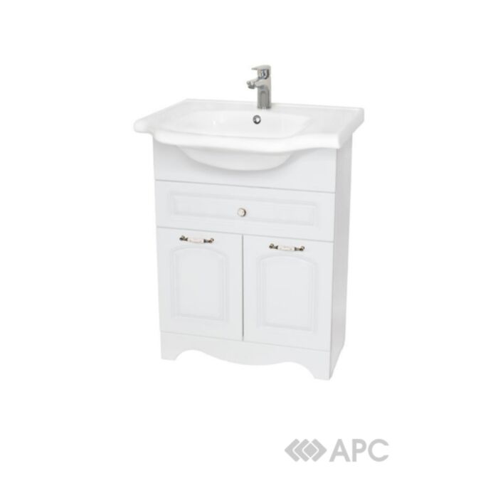 АКВА РОДОС Класік 65 виконаний у вишуканому та легкому стилі Ар Деко. Злегка округлені краї тумб доповнюються плавними вигинами декорів філенчатних дверей.