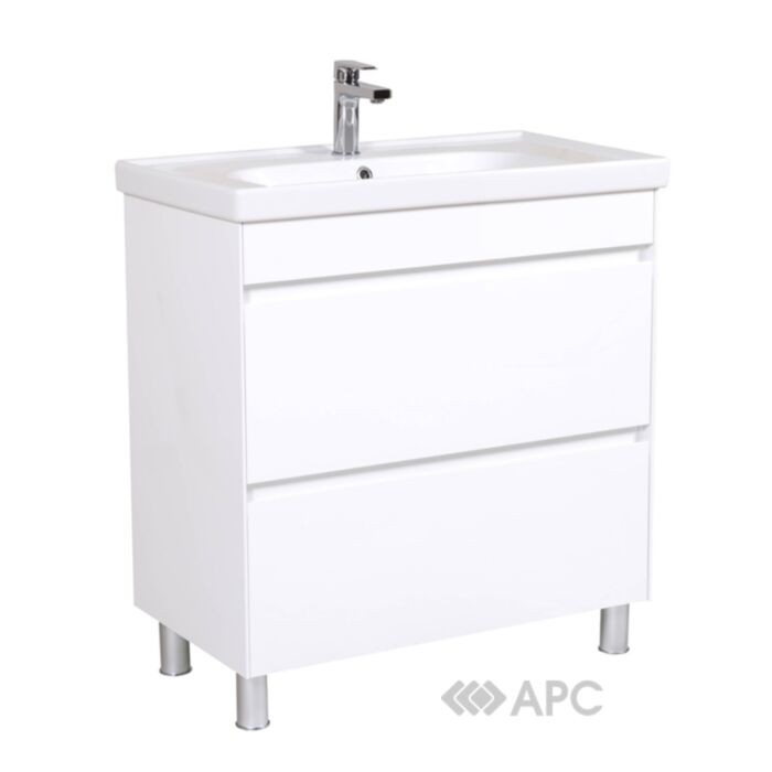 Представлена тут для підлоги тумба серії Валенсія від Aqua Rodos має габаритні розміри 80 х 85 х 45 см, оснащується двома висувними ящиками і ніжками. Модель поставляється разом з раковиною Frame від турецької компанії CeraStyle шириною 80 см.