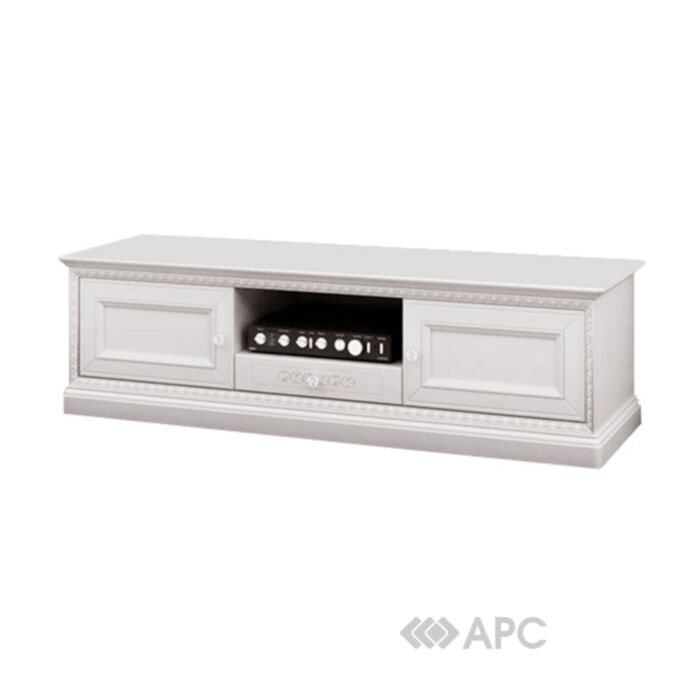 Елегантна телевізійна тумба виконана в благородному класичному стилі. Меблі для вітальні Венеція виконані в кольорі avorio / beige - це елегантний колір слонової кістки, відтінений бежевою патиною, яка підкреслює рельєфність узорів і надає меблям розкішний вінтажний вид. Декоративні елементи, опори, карнизи, цоколі і профілі зроблені з масиву дерева (вільхи). Фільонки фасадів зроблені їх МДФ.