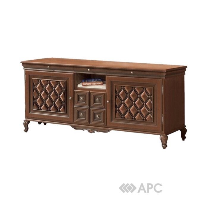 Граціозний телевізійний комод на фігурних ніжках, прикрашений витонченими декоративними елементами, входить до складу розкішної модульної системи Новіта, яка виконана в класичному стилі. Колір виробу - горіх.