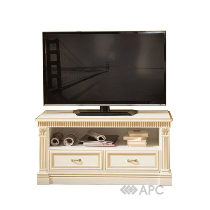 Розкішний стиль італійської класики підкреслюється декоративною різьбленною обробкою. Золота патина надає тумбі аристократичний антикварний вигляд.