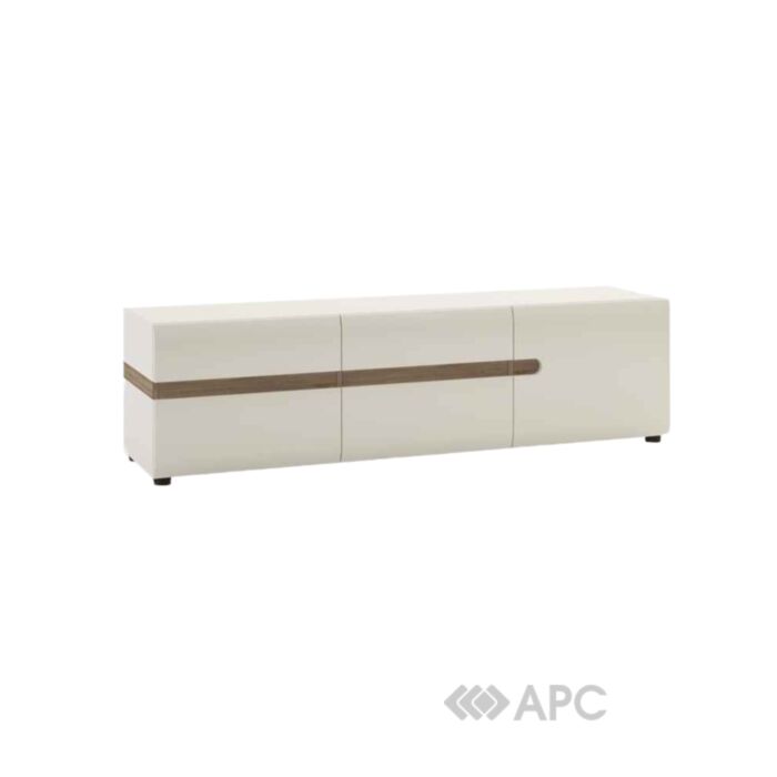 Комод з колекції Linate виробництва компанії MebleWojcik. Меблі з колекції Лінат є лідером в продажах у своєму сегменті. Глянцеві фасади білосніжного кольору, заокруглені форми та додаткове освітлення – головні переваги цієї колекції.