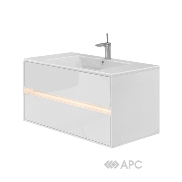 Тумба укомплектована LED-освітленням (світлодіодною стрічкою), яке розміщене в пластмасовому коробі між фасадами, електрична частина виробу має клас енергозбереження - А