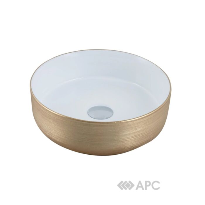 Умивальник Cabo Myrina Gold 36,5*36,5*12,5 см – це накладна модель, призначена для встановлення на стільницю, яка вирізняється компактними розмірами та унікальним дизайном. Він має круглий силует із золотистою зовнішньою поверхнею, що створює ефектний та сучасний вигляд. Виріб виготовлений із санітарної кераміки та має класичний білосніжний колір, що забезпечує його довговічність, високу гігієнічність та легкість у догляді. Габаритні розміри умивальника складають лише 36,5 см у ширину, 36,5 см у глибину та 12,5 см у висоту, що робить його ідеальним вибором для гостьових санвузлів або невеликих ванних кімнат.
