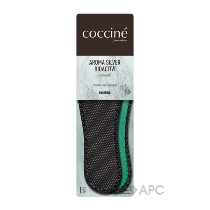 Устілки Coccine Aroma Silver Bioactive — це ідеальне поєднання зручності, захисту та гігієни. Виготовлені з м'якого текстилю та еластичного латексу, вони забезпечують максимальний комфорт навіть під час тривалого носіння. Завдяки своїм амортизуючим властивостям латекс ефективно поглинає удари, зменшує навантаження на суглоби та допомагає зняти втому ніг. Іони срібла, інтегровані у матеріал, запобігають розмноженню мікроорганізмів, що забезпечує антибактеріальний захист і запобігає неприємним запахам. Ця модель чудово підійде людям із підвищеною пітливістю стоп, для активного способу життя, спорту або походів. Також устілки є ідеальним вибором для людей із надмірною вагою, забезпечуючи додаткову підтримку тіла.