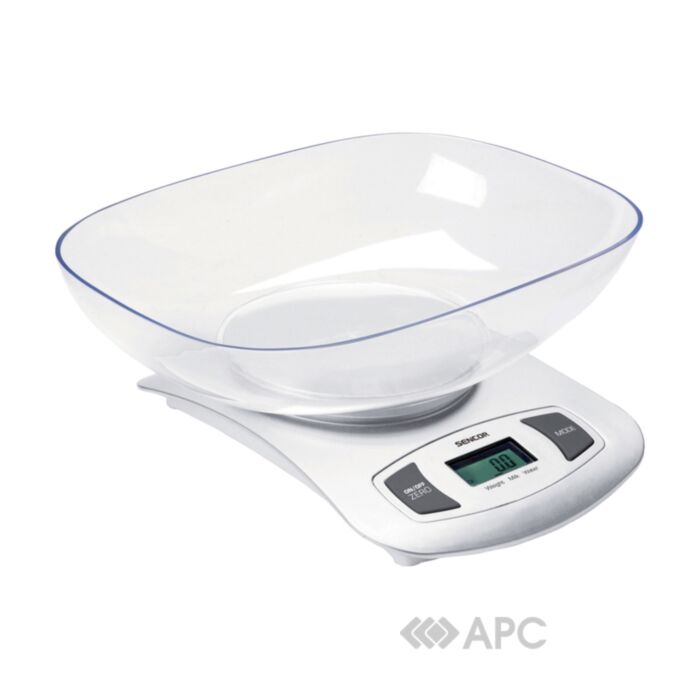 Ваги кухонні електронні з чашею Sencor SKS4001WH – це функціональний прилад для кожної кухні. Дозволяє зважувати продукти до 5 кг. Ціна поділки 1 г. Живлення забезпечує літієва батарейка. Зручна прозора чаша дає можливість безпечно й акуратно розміщувати продукти різних розмірів та об’ємів. До додаткових функцій належить автовідключення, врахування тари, послідовне зважування в одній посудині та вимірювання об’єму рідини. Для зручного управління прилад обладнаний великими кнопками та цифрами на дисплеї, а також індикатором перевантаження. Корпус з білого пластику має компактні розміри, не займає на кухні багато місця, естетично доповнює інтер’єр.